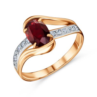 Золотое кольцо с гранатом и фианитами с родированием