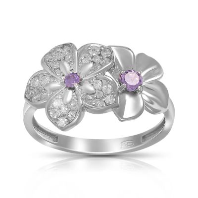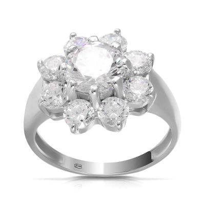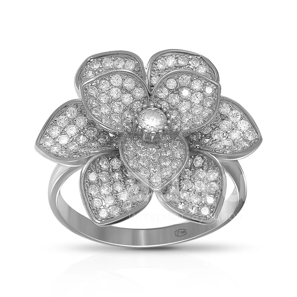 Кольцо Цветок из серебра с фианитами