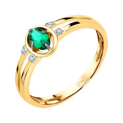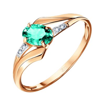 Золотое кольцо с изумрудом и бриллиантами с родированием