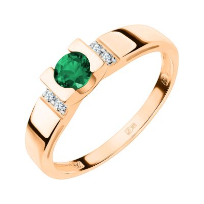 24 990руб.Золотое кольцо с изумрудом и бриллиантами с родированием