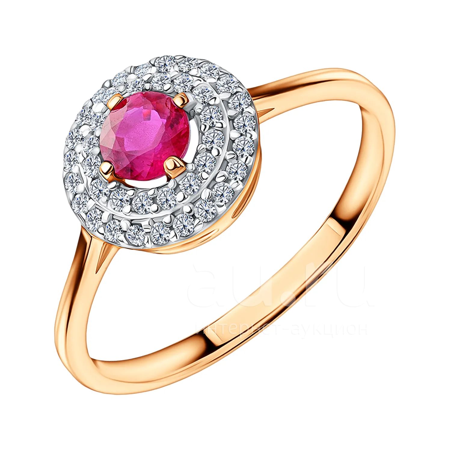 Золотое кольцо с рубином и бриллиантами