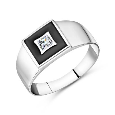 Кольцо-печатка из серебра с эмалью и фианитом