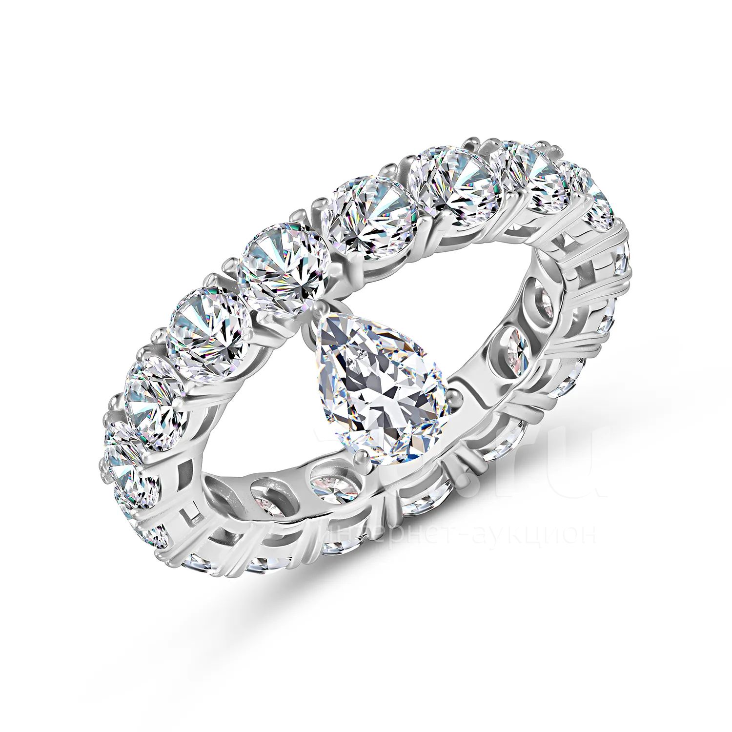 Серебряное кольцо с фианитами и родированием