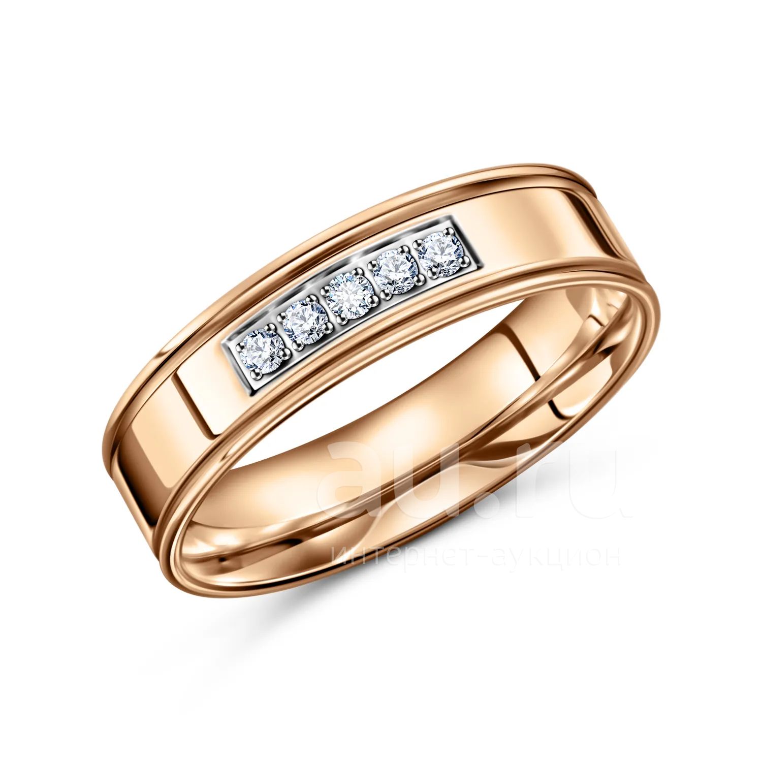 Золотое обручальное кольцо с фианитами 5 мм