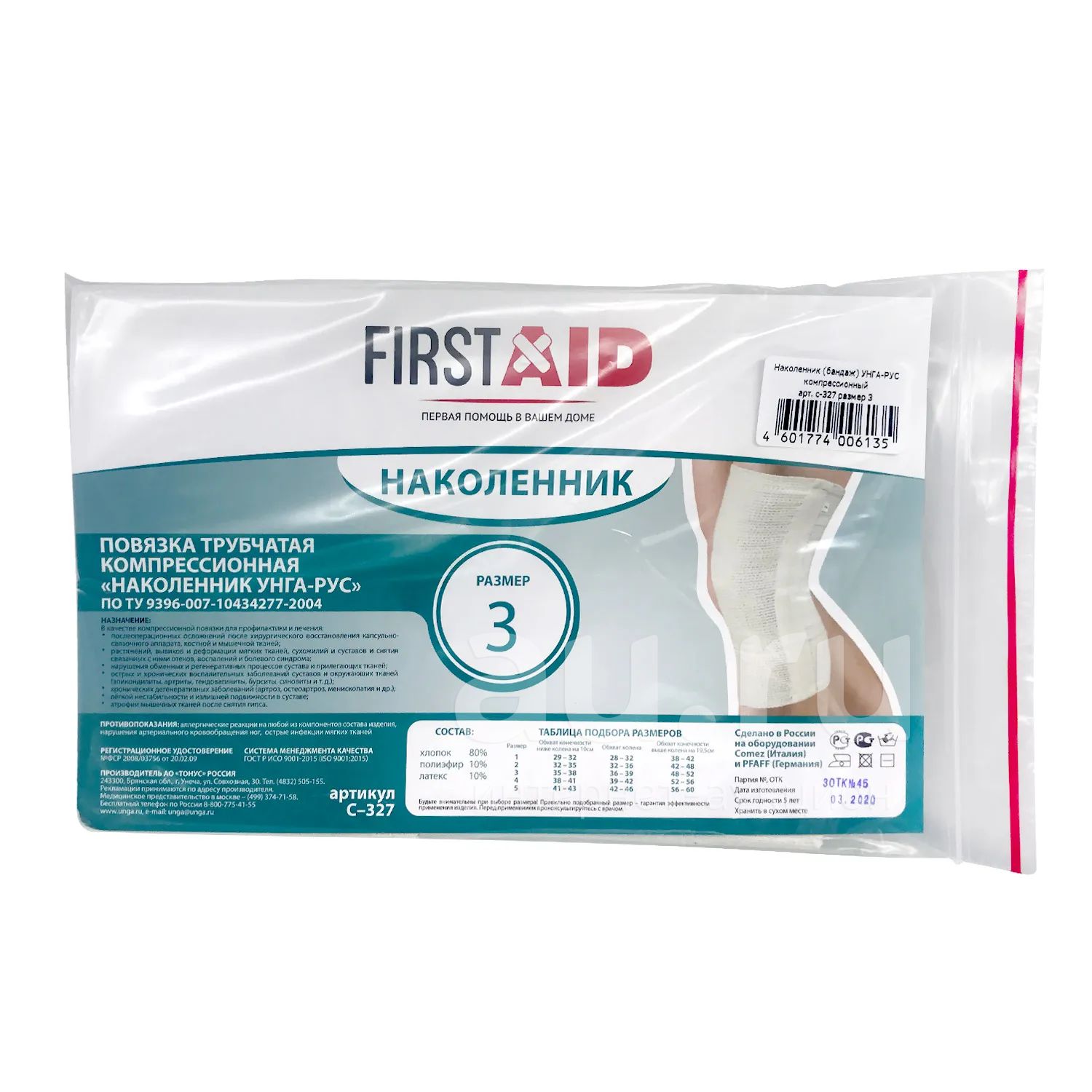 Наколенник Ферстэйд( FirstAid) изготавливается из медицинского трикотажа. Показан при различных болевых ощущениях и варикозном расширении вен с локализацией в области колена. Используется для профилактики и лечения артрита, артроза и травм.