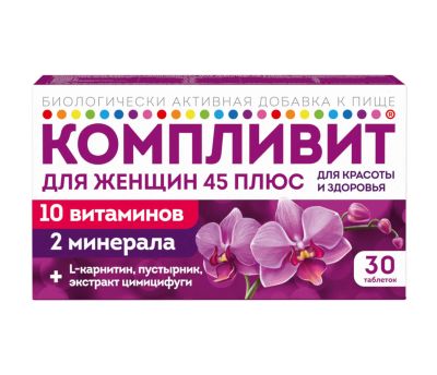 БАД к пище «Компливит® Актив» является дополнительным источником витаминов А, С, Е, D , группы В (В1, В2, В3, В5, В6, В12, фолиевой кислоты), минеральных элементов (железа, меди, цинка, селена, йода, марганца), содержащей магний.