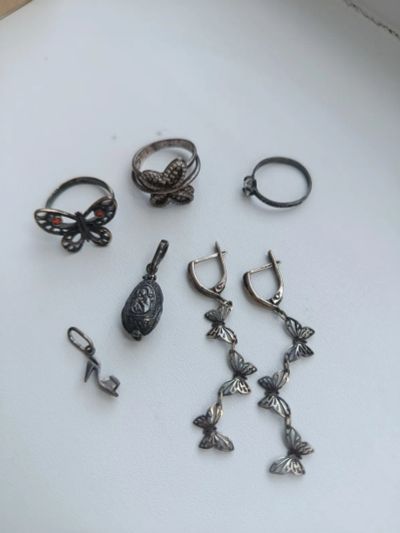 Кольцо, цепочка и кулон сердечко - серебро.