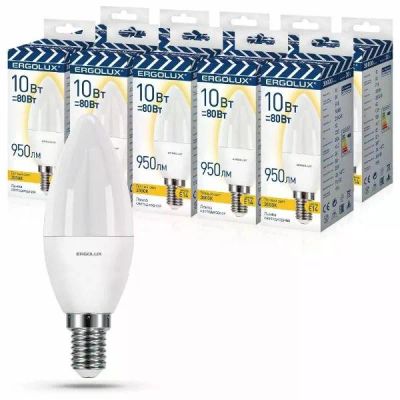 Светодиодные лампы Ergolux "Свеча" 11Вт E27 3000K 180-240В, 10 шт (LED-C35-11W-E27-3K)