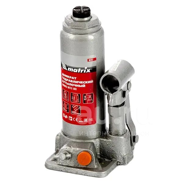 Домкрат Matrix (гидравлический бутылочный, 2 т, высота подъема 181-345 мм, в кейсе является переносным прибором для поднимания и фиксации на нужной высоте тяжелых предметов.