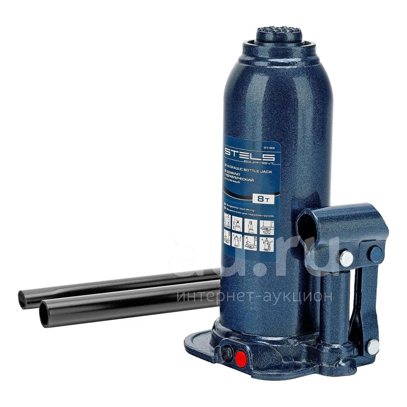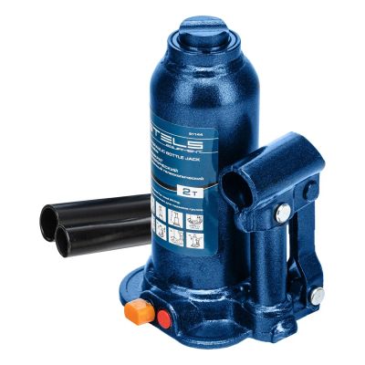 Бутылочный домкрат Stels (8 т) предназначен для подъема тяжелых предметов и машин весом до 8 т. У изделия прочный стальной корпус синего цвета.