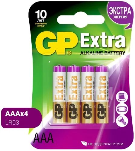 86 391руб.Батарейки GP ААА мизинчиковые алкалиновые Extra Alkaline, набор 4 шт ...
