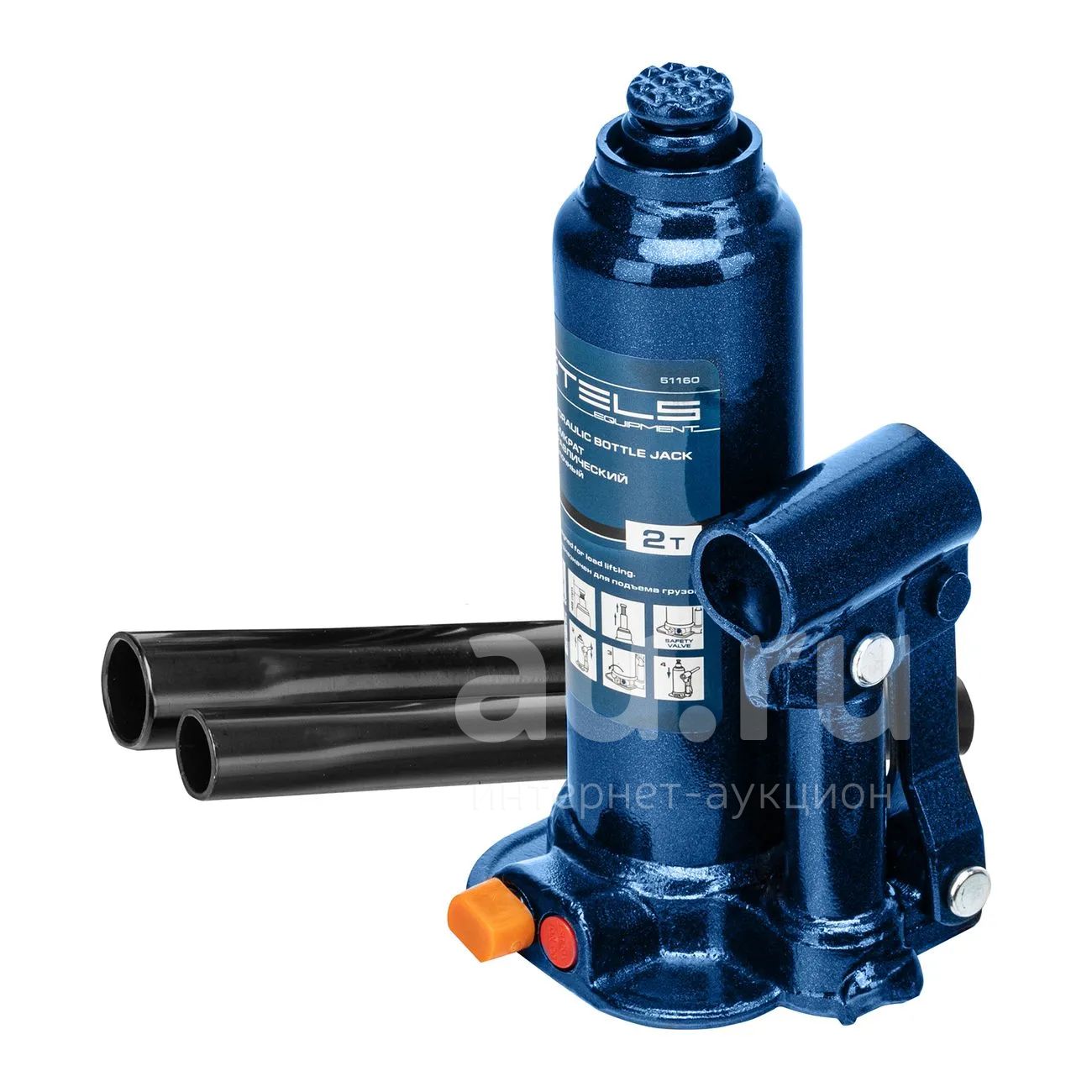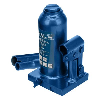 Бутылочный домкрат Stels (2 т) предназначен для подъема тяжелых предметов и машин весом до 2 т. У изделия прочный стальной корпус синего цвета.