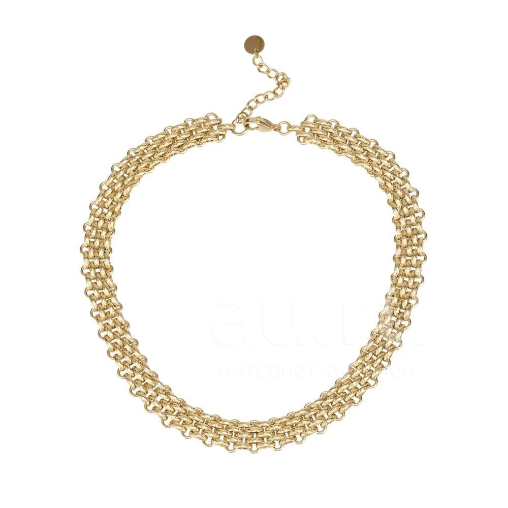 Колье в торжественном прочтении из новогодней коллекции EKONIKA PREMIUM создано из стали с позолоченным покрытием. Аксессуар представляет собой множество геометричных звеньев с фактурой, напоминающей змеиную кожу. Каждое из них соединено между собой в оригинальное плетение. Подвижный силуэт особенно эффектно подчеркивает игру света граней изделия. Комбинируйте украшение с вечерними образами и повседневными сочетаниями, если хотите создать выразительный акцент. К колье можно подобрать браслет и серьги аналогичного дизайна из нашей новой коллекции.
