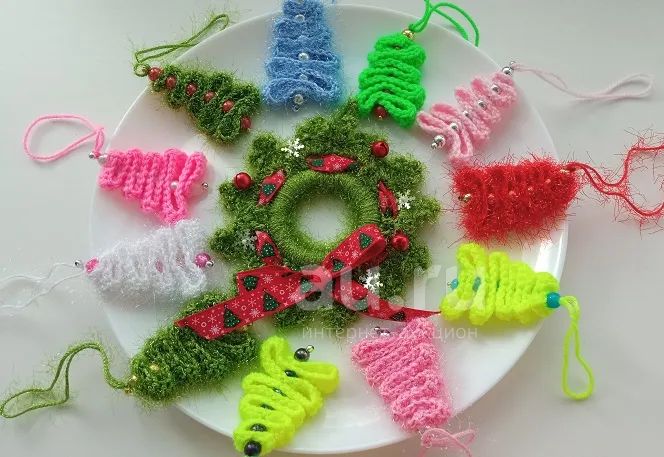 350 руб.Набор Елочки и веночек Новогодний ручная работа