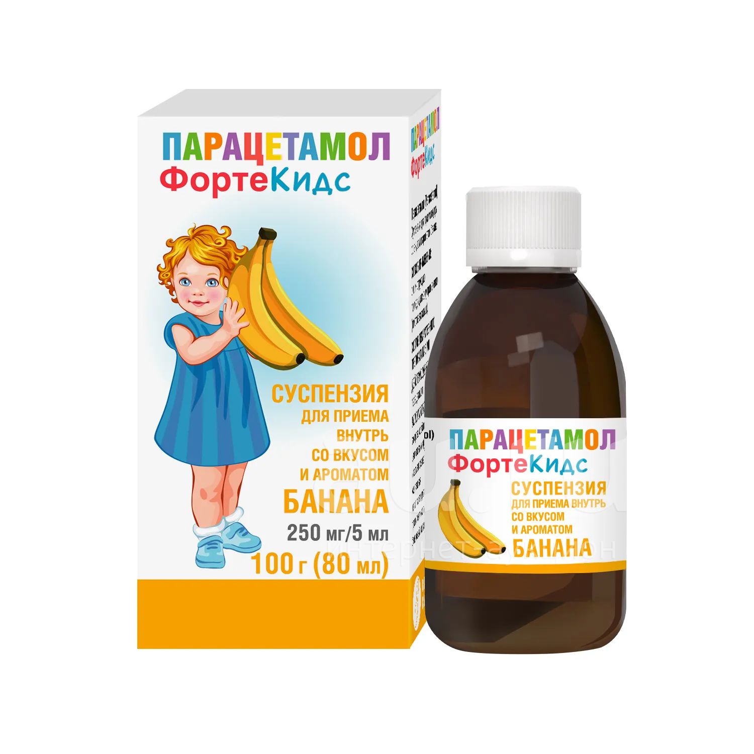 Парацетамол фортекидс сусп для приема внутрь 250мг 5мл 100,0 80мл со вкусом и ароматом банана