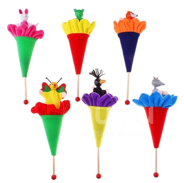 На деревянной палочке расположена плотная основа в которую "прячется" зверек! Зверята прячутся в цветочек и снова показываются.