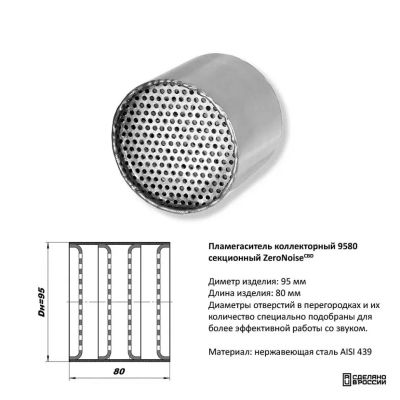 500руб.Пламегаситель вместо катализатора коллекторный D95мм, секционный (тихий)