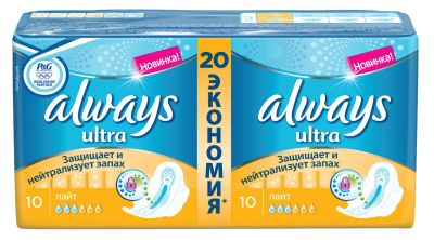 1 196руб.Always Ультра Прокладки гигиенические Лайт 10 шт+10 шт