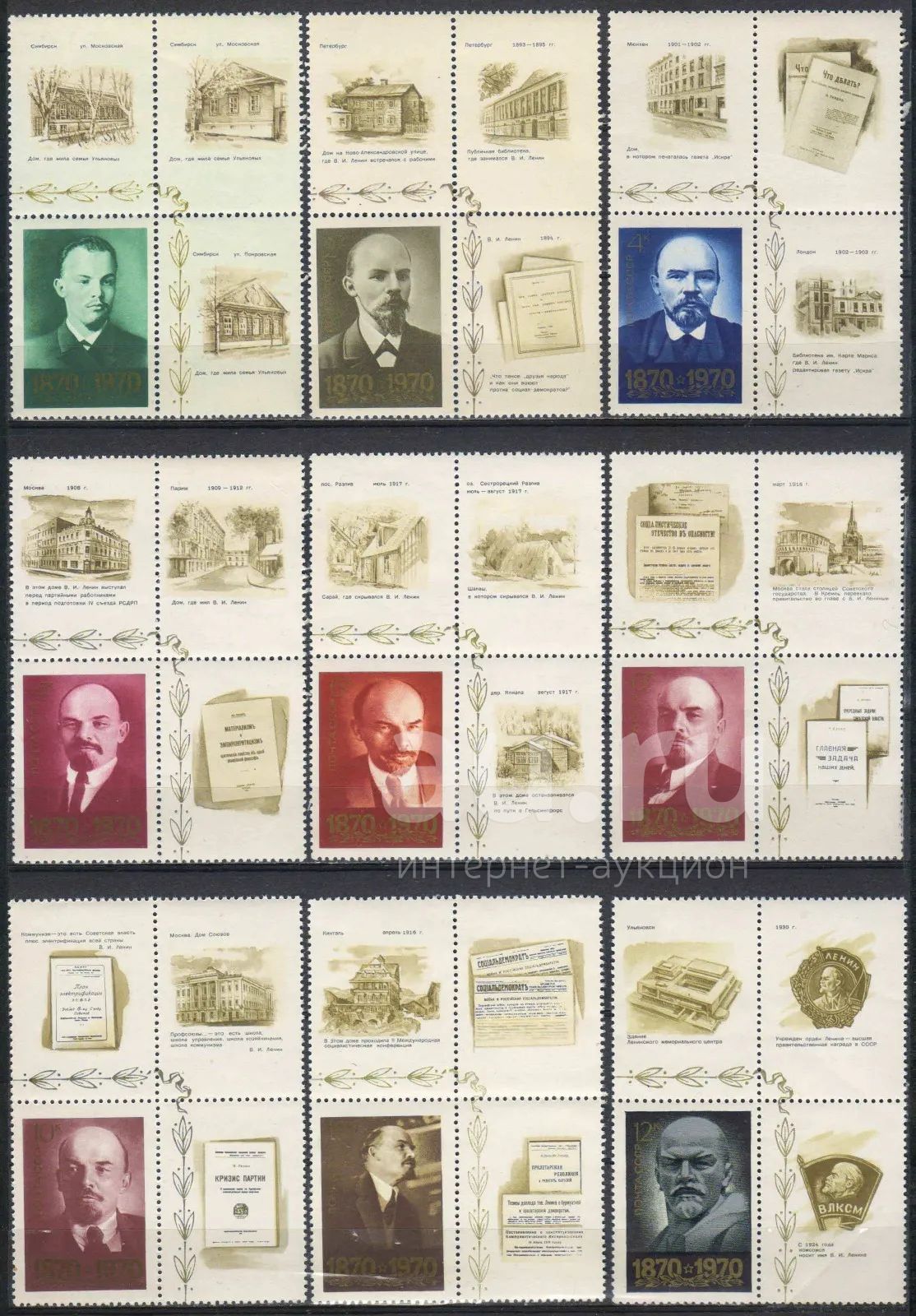 1970, апрель. 100-летие со дня рождения В.И.Ленина. Полная серия. № 3879-3888. Два скана