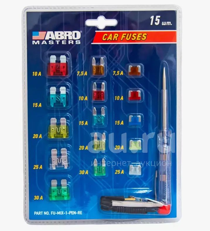 Комплект предохранителей Abro 15шт + пробник 5-30А