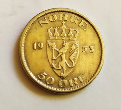 Норвегия 50 эре 1953 Хокон VII первый год чекана
