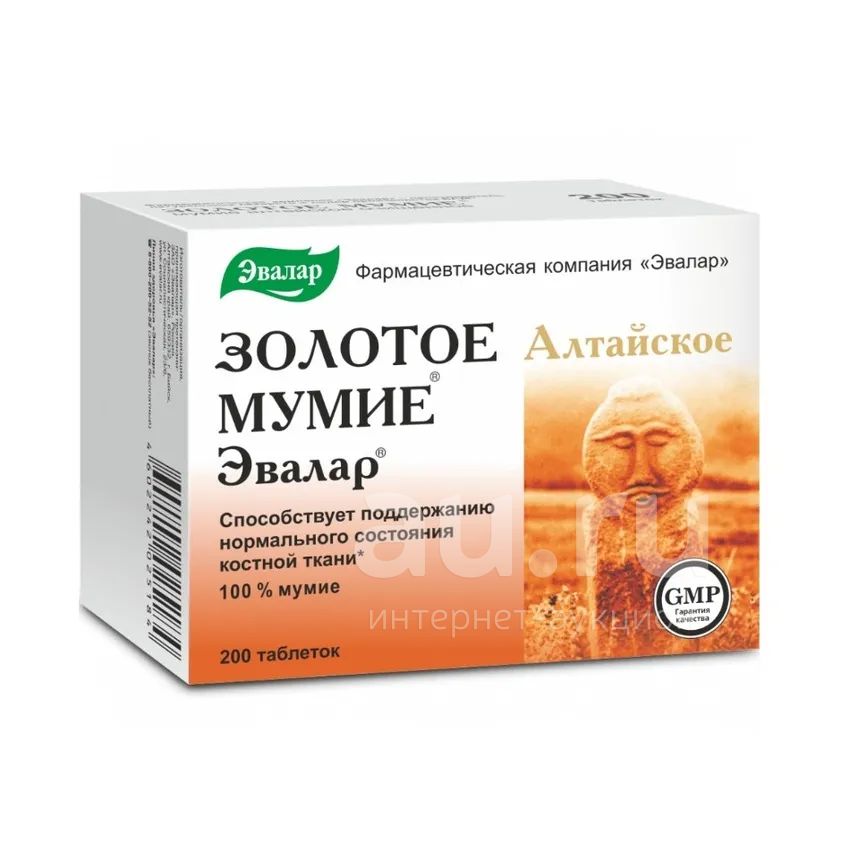 Эвалар Мумие Золотое алтайское очищенное таблетки 0,2г № 200 БАД