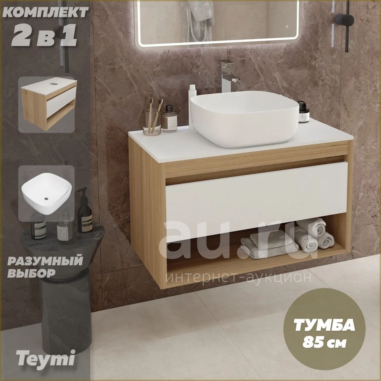 11 990руб.Тумба с раковиной Teymi Ritta, подвесная, 85 см, дуб Эврика/белая мат...