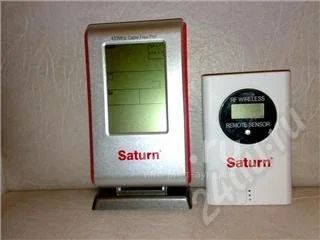 Метеостанция Сатурн ST1861.Измеряет температуру в помещении,уличную,имеется выносной датчик-блок,влажность и ещё что-то.Разбираться нужно,инструкция где-то потеряна.