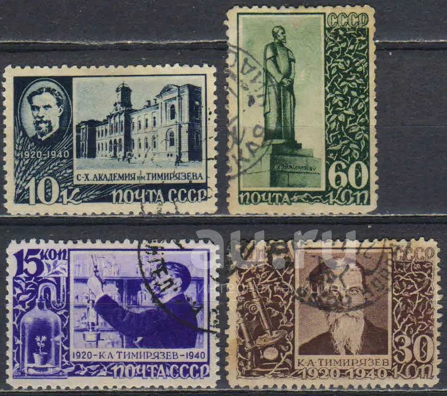 1940, июнь. 20-летие со дня смерти естествоиспытателя К.А.Тимирязева. Полная серия. № 737-740