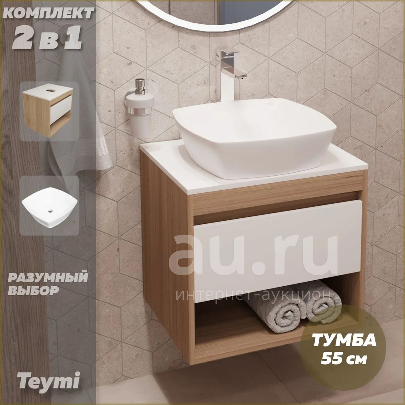 11 990руб.Тумба с раковиной Teymi Ritta, подвесная, 55 см, дуб Эврика/белая мат...