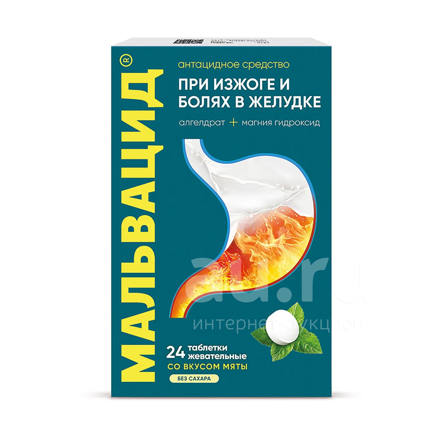 Мальвацид таблетки жевательные без сахара Мята 400мг + 400мг № 24