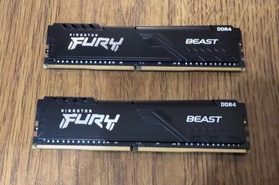 2 500руб.DDR4 32Gb (2*16Gb) 3200MHz Kingston Fury Beast KF432C16BB1K2/32. Доставка, обмен.