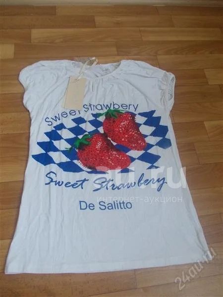 стильная футболочка Клубничка р-р 46-48 (италия) новая с рубля