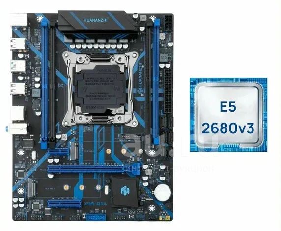 Мат.плата S2011V3 Huananzhi X99-QD4 с процессором Xeon E5-2680v3 (mATX,4DDR4,PCI-E,2M.2,4USB2.0,2USB3.0,CPU TDP120Вт)[HNZ-X99QD4-2680V3]