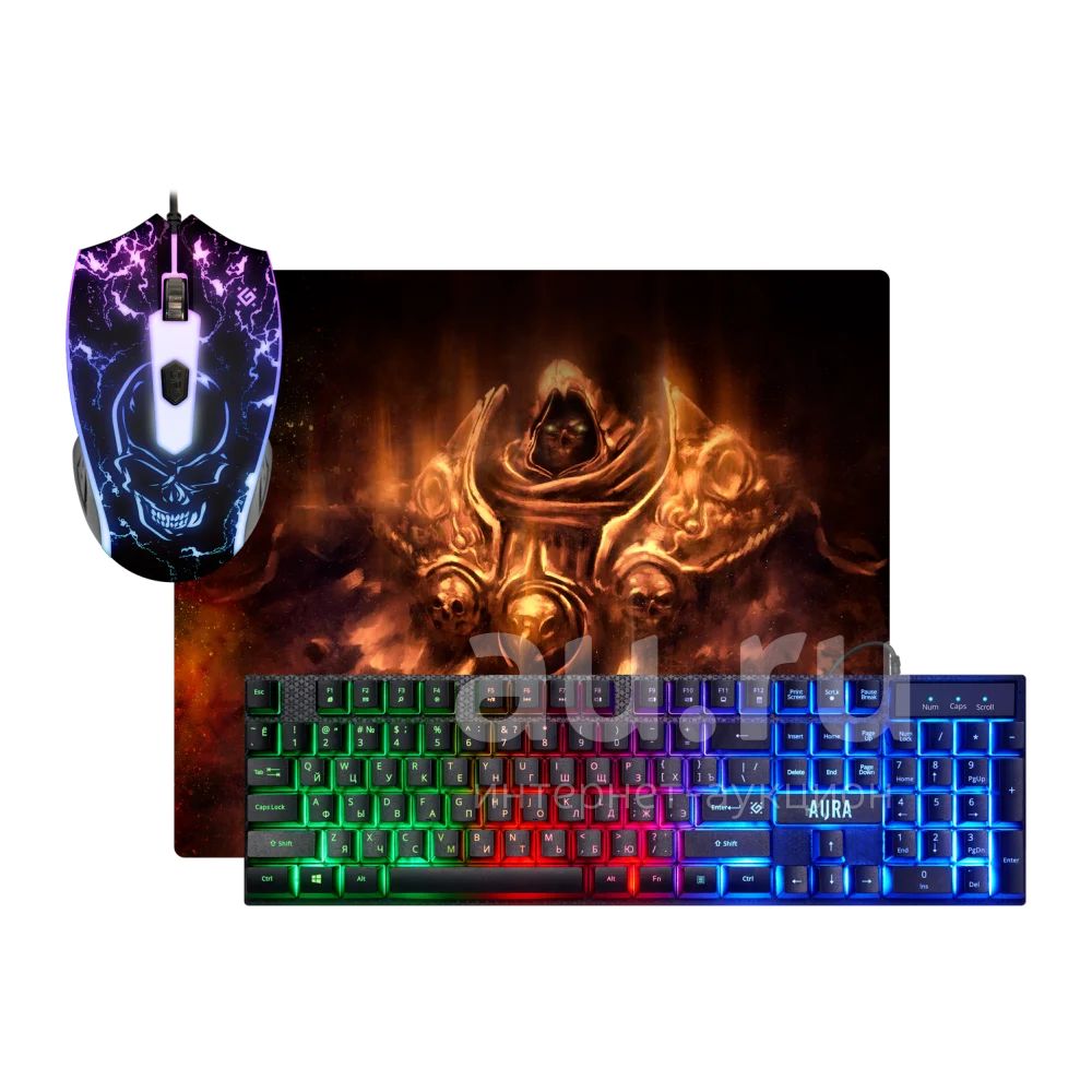 Клавиатура проводная + мышь проводная + коврик Defender Aura MKP-117 - Чёрная