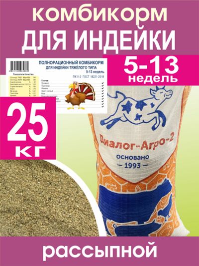Комбикорм для индеек тяжелого типа 5-13 недель гранулированная (25 кг)