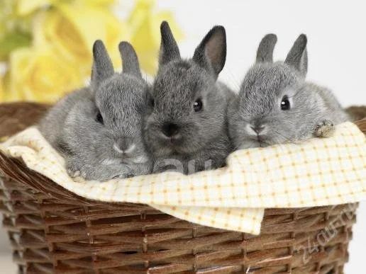 Два крольченка.Один серый-дымчатый.второй белый с серыми пятнышками.очень красивый.