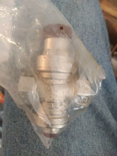Редуктор понижающий давление 1/2 (в/в).Редуктор месяц стоял на подаче холодной воды на стиральные машины в прачечной.Т.е он в общем то как новый.Длч сравнения прилагаю фотографию с ценами одного из магазинов