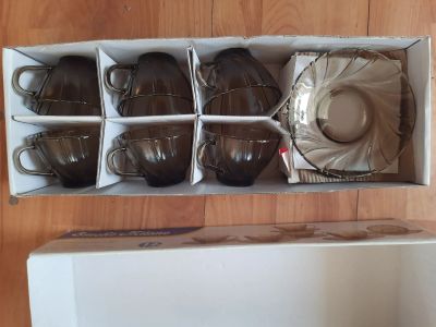 50руб.Кофейные пары (темное стекло) набор 12 предметов