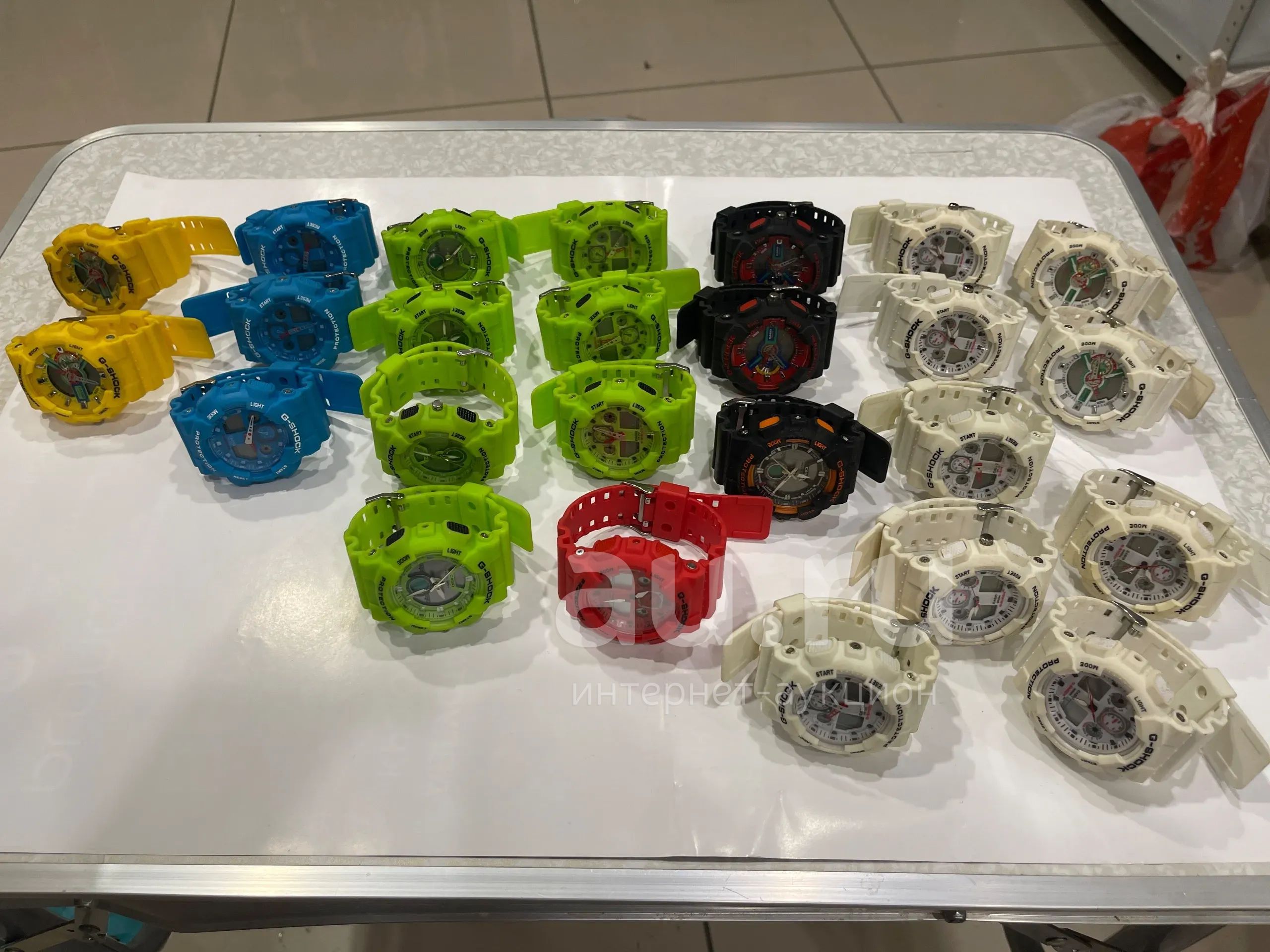 Лет пять прошло как закрыл магазин по продаже часов. Так и лежали на складе. Белые были сверху и выгорели немного. Остальные цвета в полном своём цвете.