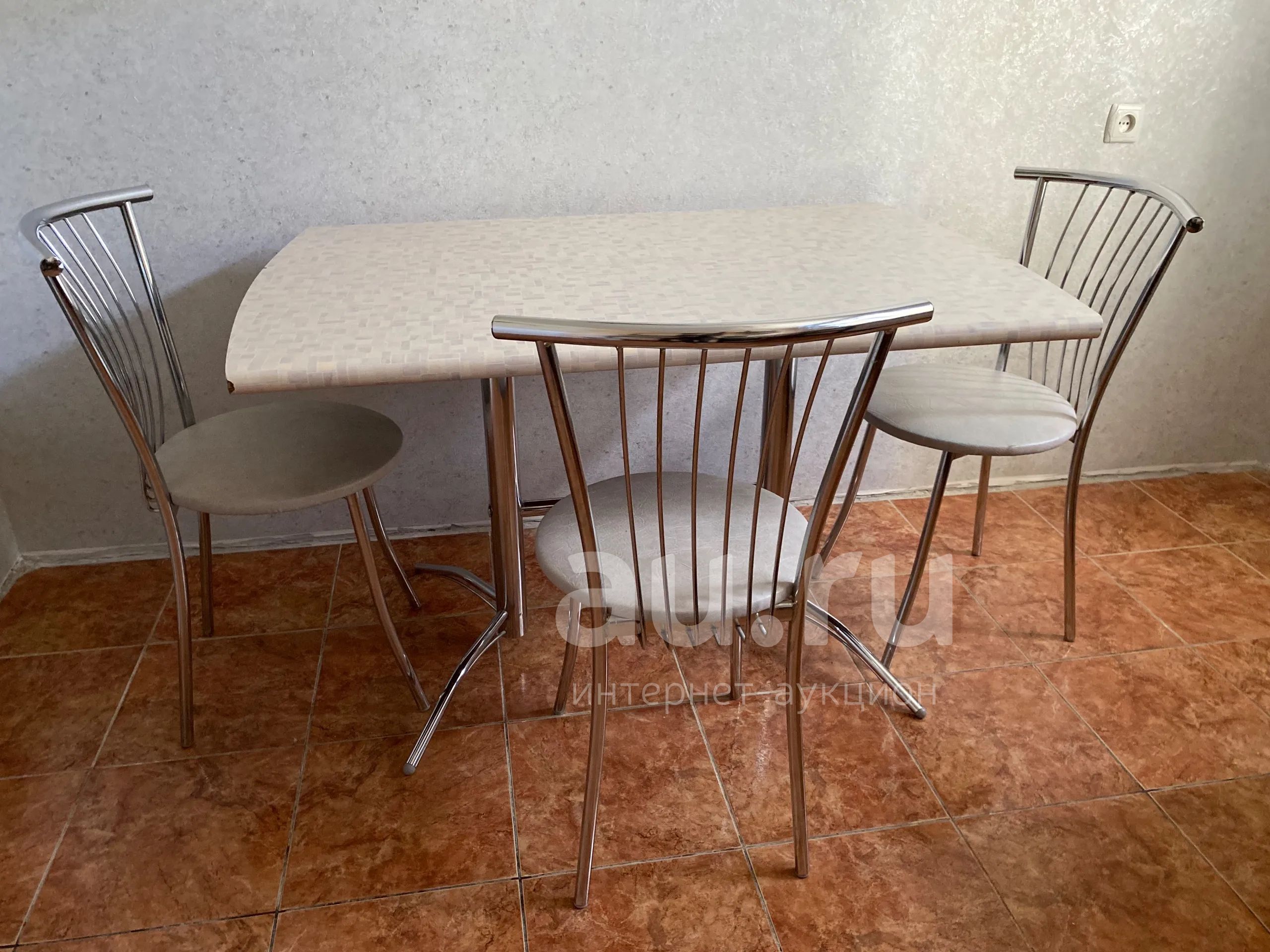 Продам стол кухонный и три стула б/у, ножки металл.по столу есть некритичные коцики см на фото