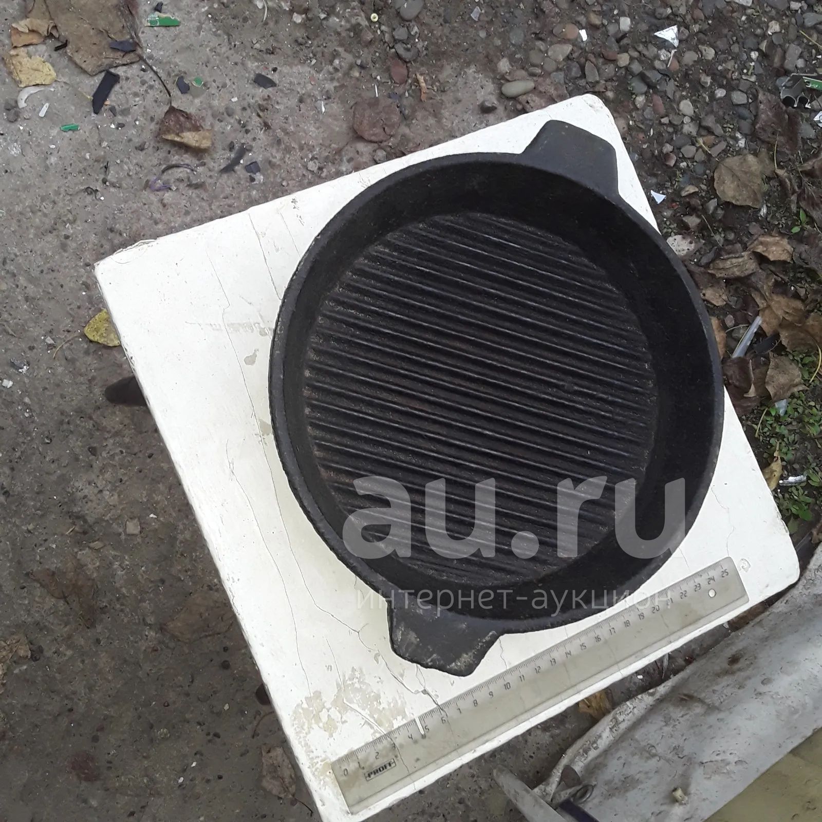 Сковорода клеймо тяжёлая толстая с ручками СССР чугун чугунная гриль в рубчик . дно почищено