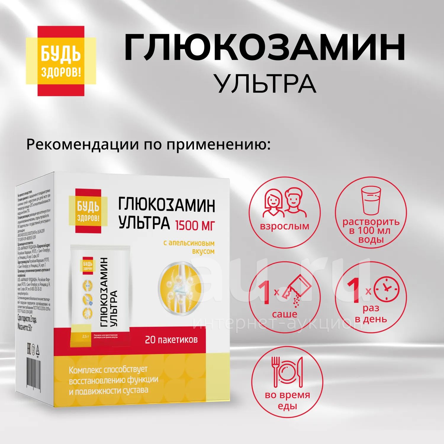 Будь Здоров Глюкозамин Ультра с апельсиновым вкусом саше 2,5г №20