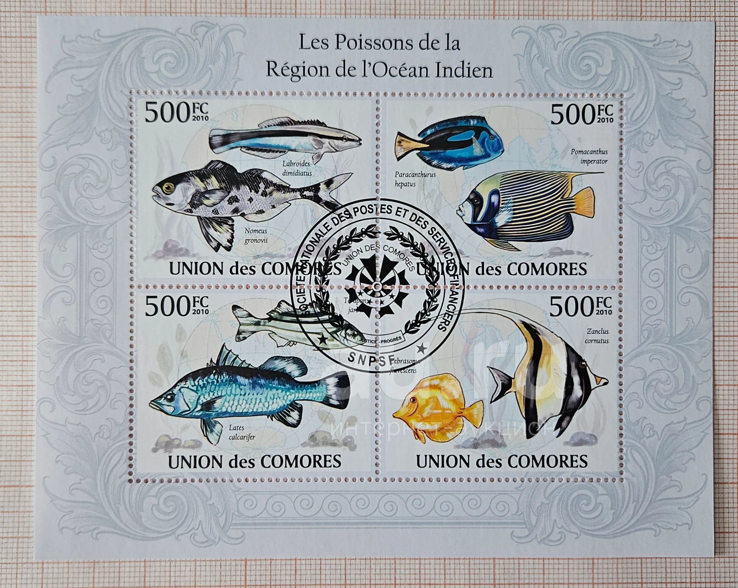 Марки: Коморы. 2010. Тропические рыбы (ПБ гашеный)
