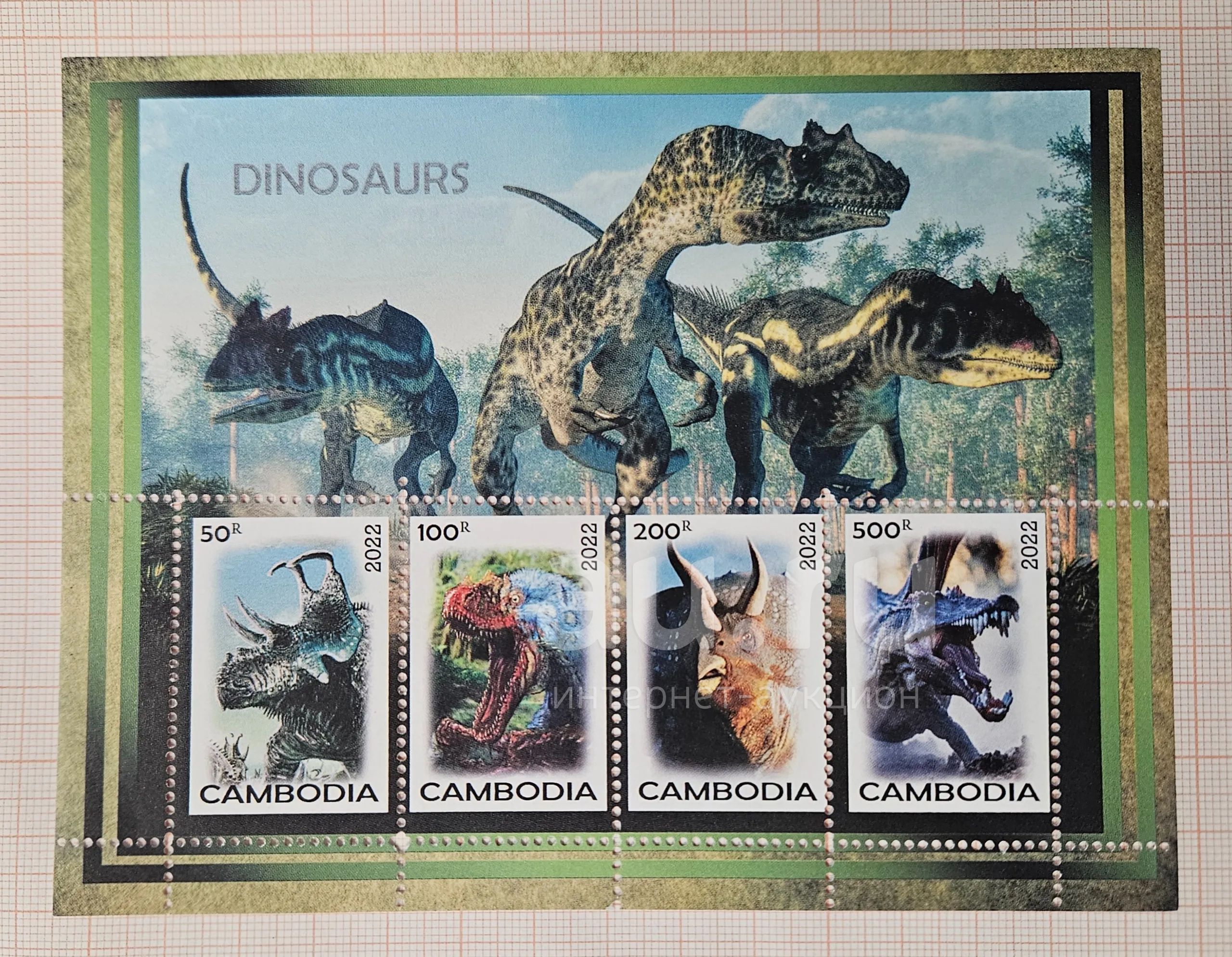 Марки: Камбоджа. 2022. Динозавры - 1 (ПБ чистый)