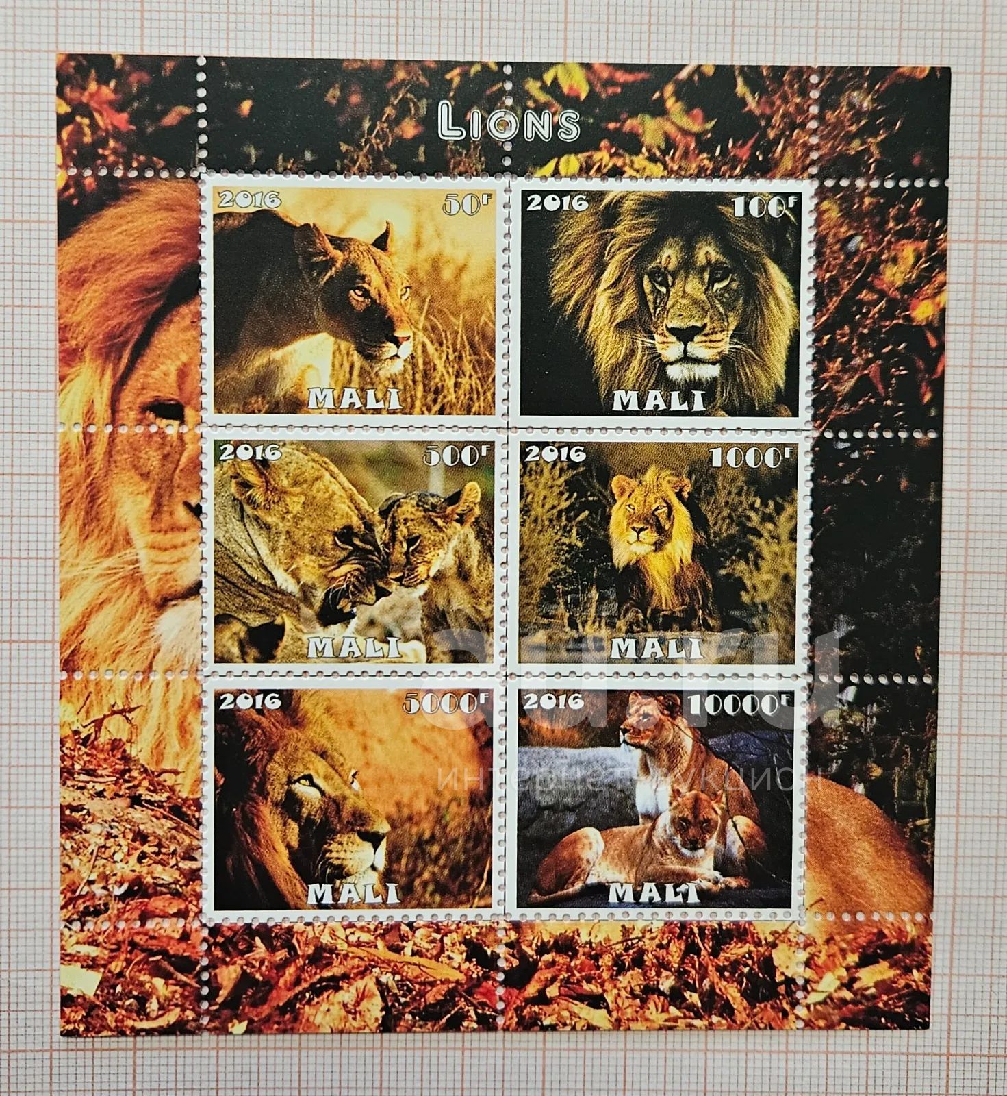Марки: Мали. 2016. Львы - 3 (ПБ чистый)
