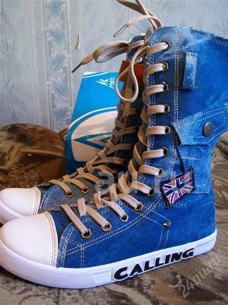 Кеды джинсовые на молнии. Размер 36, возможно меньше идут, где-то на 34-45 подойдут. На голяшке ремешок рыжий идет (на фото немного видно), можно носить и без него, кому как нравится.