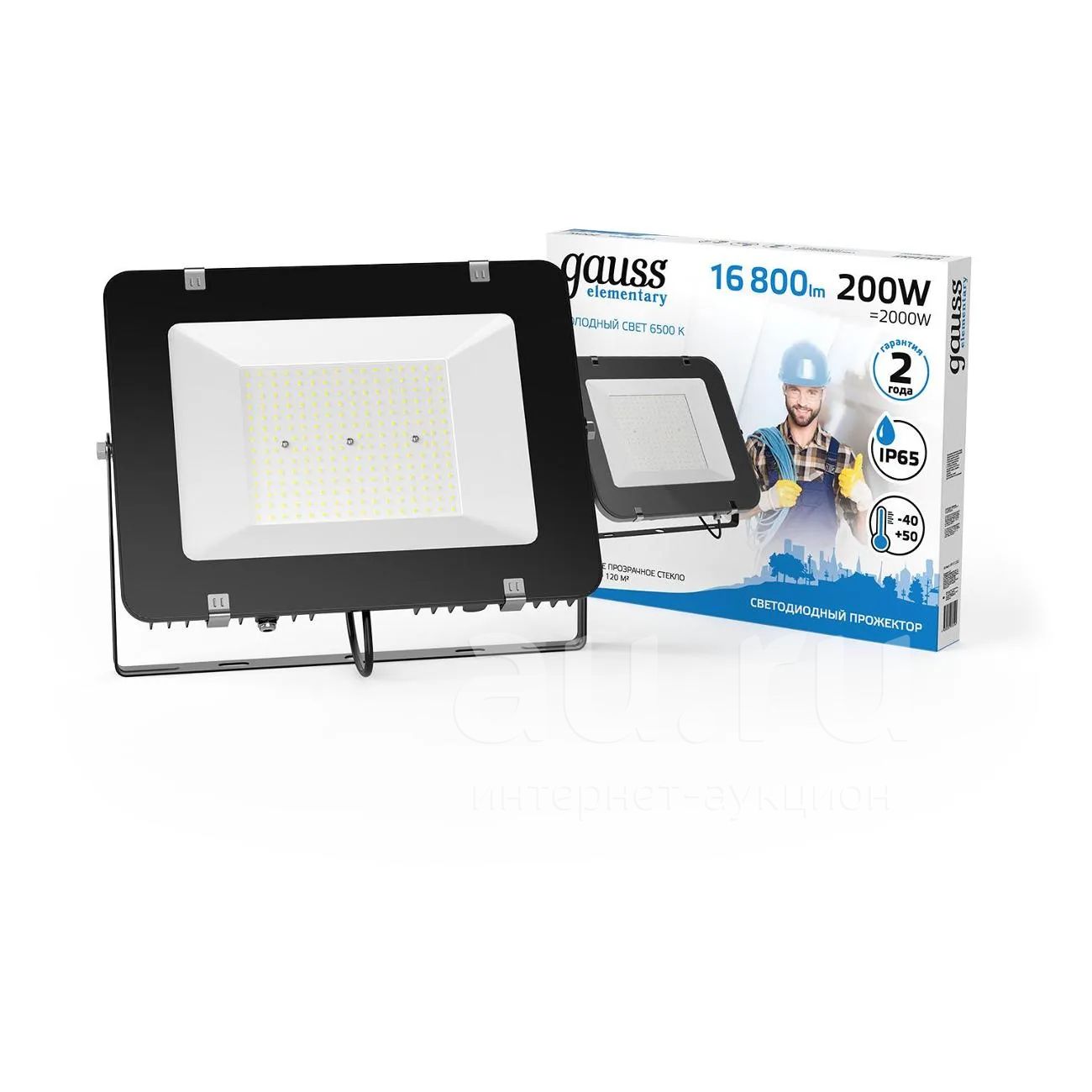 Светодиодный прожектор Gauss Elementary 200W 16800lm 6500К 175-265V IP65, черный (691511200) оснащен корпусом с классом пылевлагозащиты IP65.