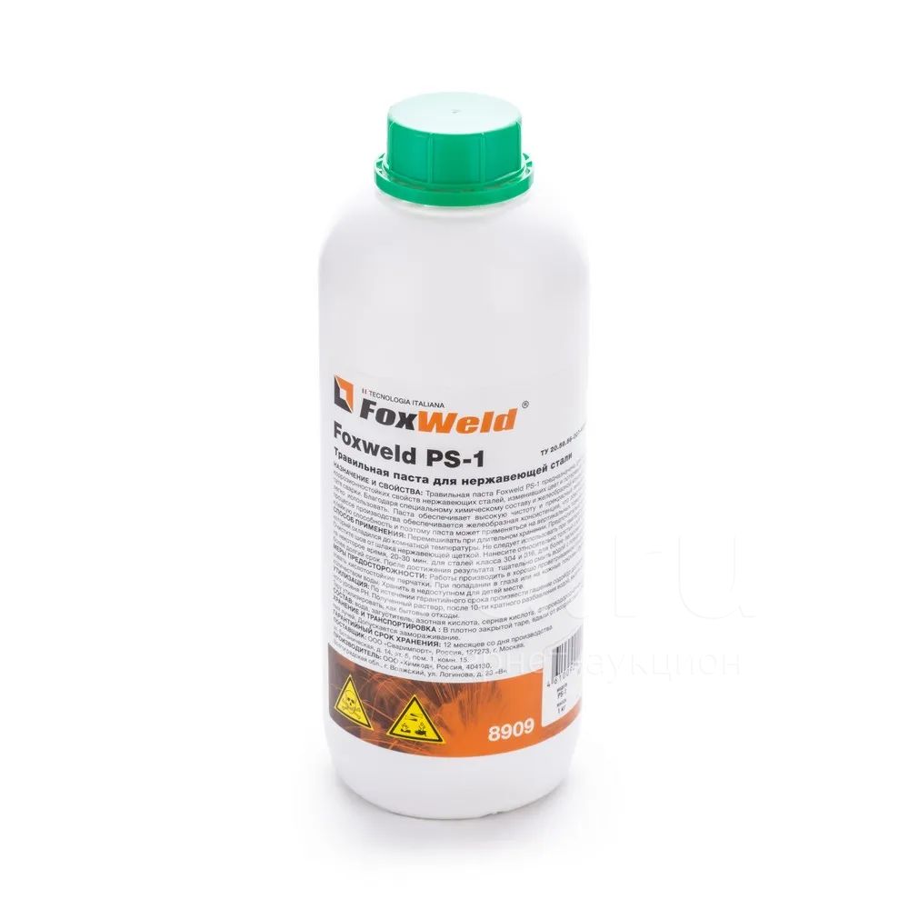 Травильная паста для нержавеющей стали Foxweld PS-1 предназначена для восстановления коррозионностойких свойств нержавеющих сталей, изменивших свой цвет и потерявших хром в результате сварки. Благодаря специальному хим. составу и желеобразной консистенции её очень легко использовать. Паста обеспечивает высокую чистоту и прекрасный внешний вид шва. Foxweld PS-1 в процессе производства обеспечивается желеобразная консистенция что обеспечивает хорошую клейкую способность и поэтому паста может применяться на вертикальных поверхностях.