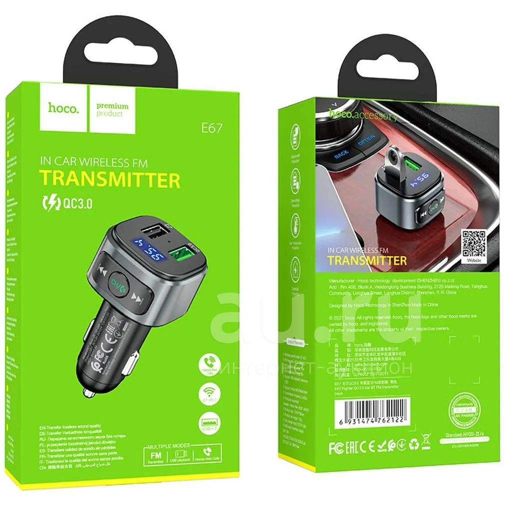 FM модулятор Hoco E67 (Bluetooth, USB, MicroSD, Вольтметр, Зарядка) Новый